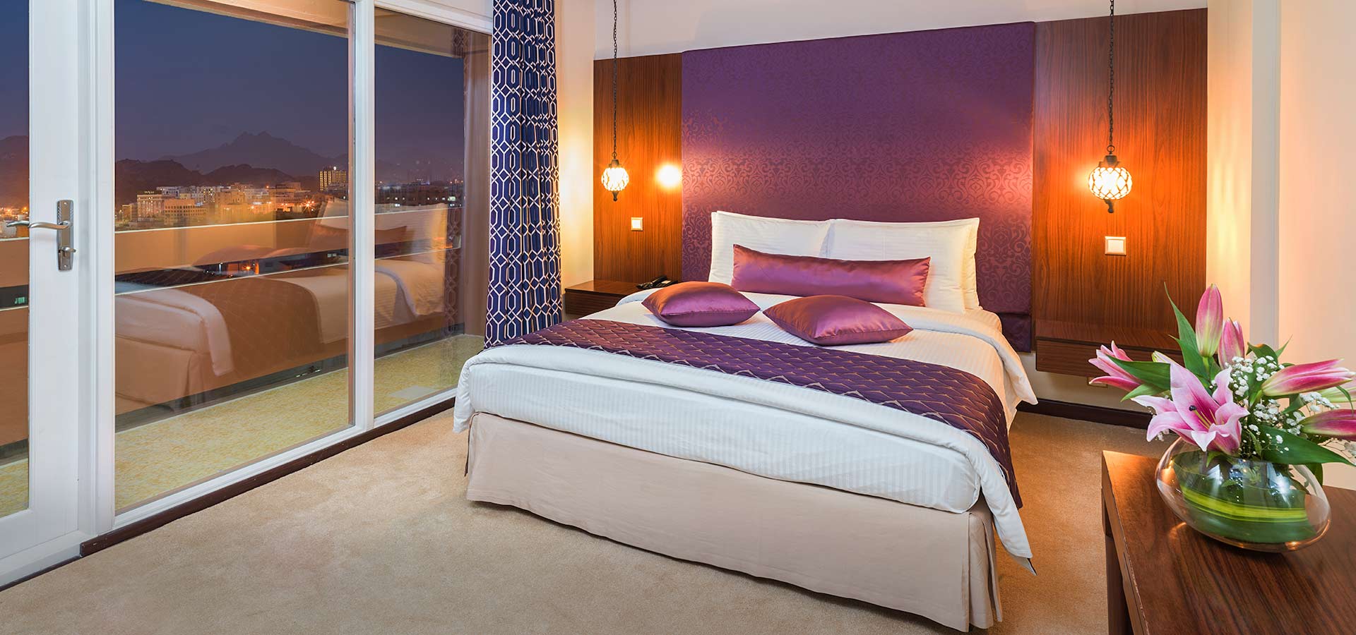 : Experience our spacious Suites. Each a fusion of elegance and comfort, ensuring guests relish comfort paired with panoramic views of Muscat’s skyline. Enjoy a haven that echoes the city’s rich legacy.